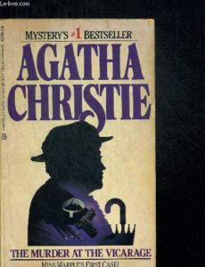 Agatha Christie’s first Miss Marple book, The Murder at the Vicarage, was published by Collins Crime Club in the UK in October of 1930. It’s one of my very favorite books – with its clever plot, humor, beautifully rendered characters and of course, the introduction in novel form of the subversive Miss Marple, it stands the test of time and has never been out of print. For that reason, it’s fun to look at covers through the years.