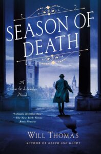 Season of Death is the sixteenth book in Will Thomas’ series set in Victorian London, featuring private enquiry agents (they prefer this term, rather than “detectives”) Cyrus Barker and Thomas Llewelyn. I had not read any of the previous books in the series before, and at first I wondered if I’d be lost, starting the series with the sixteenth book, but this novel was so engaging that I felt drawn in by the story and the characters right away, and now I want to go back and read the others. Thomas gives the reader enough detail about the characters and their previous cases that you don’t feel lost, but not so much as to spoil the earlier books.